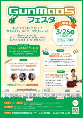県内の中学生・高校生・大学生など若い世代の公共交通利用促進を目的としたイベント「GunMaaS(グンマース)フェスタ」 が3月26日(木)に開催されます。